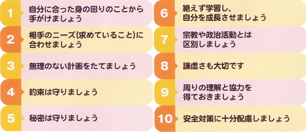 次のようなことを心がけて活動すると、ボランティア活動が自分にとっても、相手にとっても、より有意義なものになります。